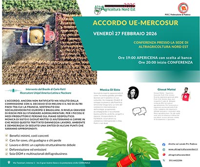Venerdì 27 febbraio proponiamo, presso la sede di AltrAgricoltura Nord Est, assieme alla federazione Prc di Padova una conferenza sul trattato UE-Mercosur. L’accordo UE-Mercosur, negoziato sin dal 1999 e sottoscritto dalla Commissione europea all’inizio del 2026 dopo oltre venticinque anni di trattative, mira a creare una delle più grandi aree di libero scambio al mondo, coinvolgendo l’Unione europea e Argentina, Brasile, Paraguay e Uruguay. Nel corso del tempo il testo è diventato il simbolo di una politica commerciale sempre più orientata alla liberalizzazione degli scambi e all’accesso ai mercati, anche a costo di comprimere questioni cruciali come la tutela del lavoro, la sostenibilità ambientale, la salvaguardia dei modelli agricoli e, addirittura, dell’Amazzonia come polmone del pianeta.