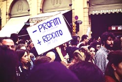 :: Sono mesi, ormai, che ci viene raccontata la stessa storia: l’Italia è fuori dal guado, la crisi è finita. Se guardiamo gli ultimi dati Eurostat, però, apprendiamo che il nostro paese è penultimo per numero di occupati, il gender pay gap (disparità di salario tra donne e uomini) supera il 20%, il 10% della popolazione più ricca possiede il 24,4% dei redditi. Ancora: in Italia ci sono 4,5 milioni di poveri assoluti (che non accedono ai consumi di prima necessità), 8,5 milioni di poveri relativi (che non superano la soglia dei 780 euro al mese). Ma l’ISTAT dice che l’occupazione è cresciuta. Peccato che il 90% delle nuove assunzioni sono a tempo determinato, e spesso si tratta di poche ore di lavoro in un mese.